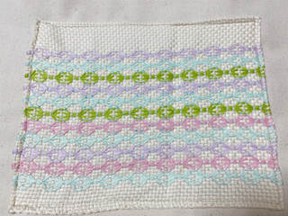 ご縁をいただいた施設の入居者が作成しているスウェーデン刺繍。繊細な手仕事をもっと知っていただくため、作品を利用したエコバックを作成。取引先さまなどにお分けしました。